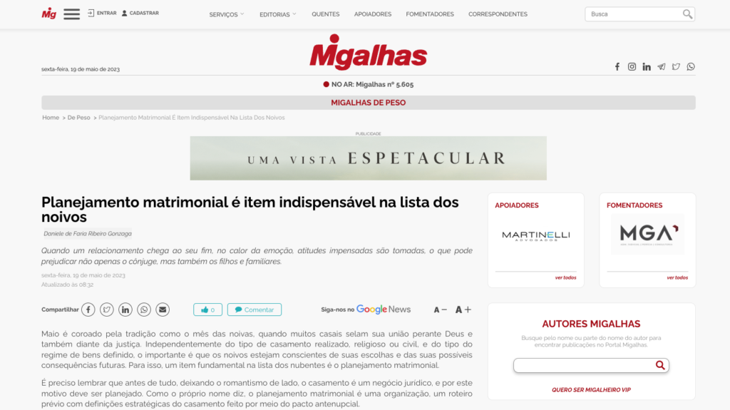 Foi publicado no Portal Migalhas, artigo da sócia Daniele Faria, falando sobre planejamento matrimonial. Veja no link abaixo e compartilhem: https://www.migalhas.com.br/depeso/386771/planejamento-matrimonial-e-item-indispensavel-na-lista-dos-noivos