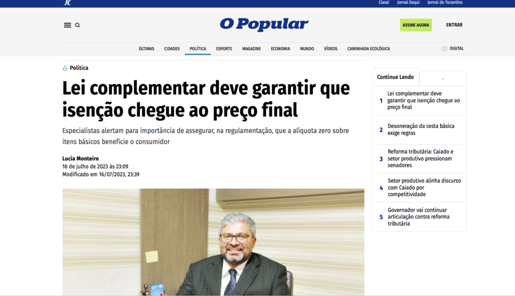 Foi publicado no jornal O Popular de hoje, entrevista com o advogado do tributarista Gilberto Scislewski falando sobre a Reforma Tributária. Vejam no link abaixo: https://opopular.com.br/politica/lei-complementar-deve-garantir-que-isenc-o-chegue-ao-preco-final-1.3048418